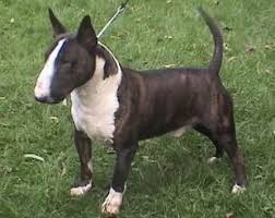 | Bull Terrier de color blanco y marrón atigrado |